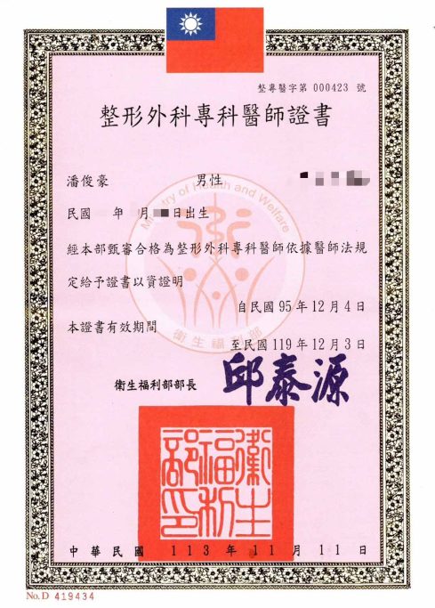 前臺灣整形外科醫學會(TSPS)副秘書長