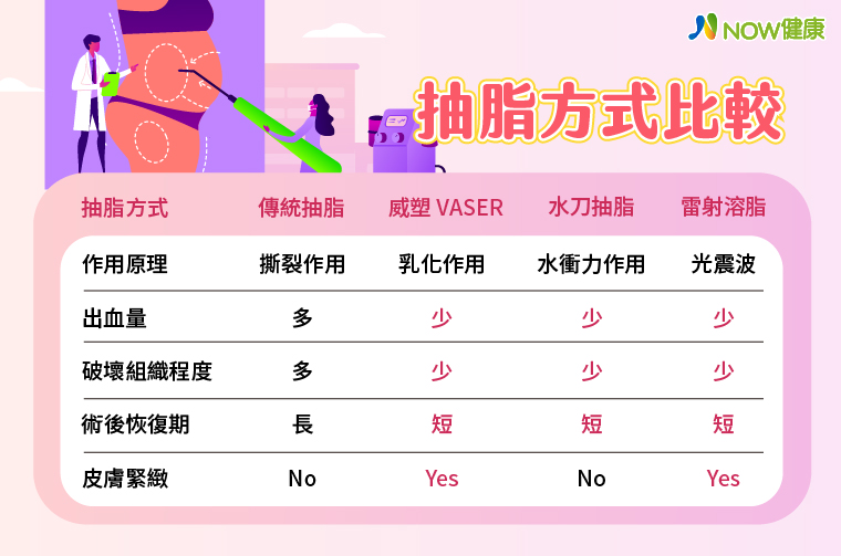 「每個病人都有適合自己的抽脂方式。」潘俊豪建議,抽脂方式因個人需求及狀況而異,進行抽脂體雕之前,務必與整形外科醫師做詳細諮詢,由醫師親自量身規劃。近來坊間出現號稱「不需麻醉、無痛抽脂、無痕抽脂、不需穿塑身衣、不需按摩」等誘因,這些都是不肖業者為吸引消費者,進而誤導民眾的話術。針對市面上抽脂機器種類五花八門,有消費者容易迷失在抽脂的機型上,但事實上,醫師專業的技術和經驗,比選擇機器來得重要。